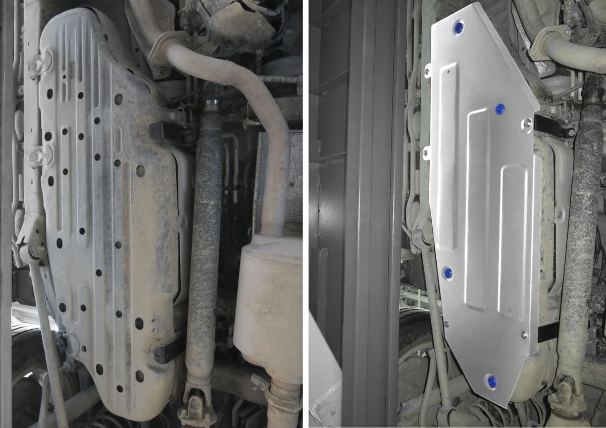 Стойкое порошковое окрашивание позволяет сохранить внешний вид, защитит от царапин, предотвратит коррозию. Также имеется утопленный крепеж для предотвращения срывов. Крепеж не образует с алюминием гальваническую пару. Защита спроектирована индивидуально для автомобиля, что позволяет устанавливать ее в штатные места без доработки кузова за 10 мин.