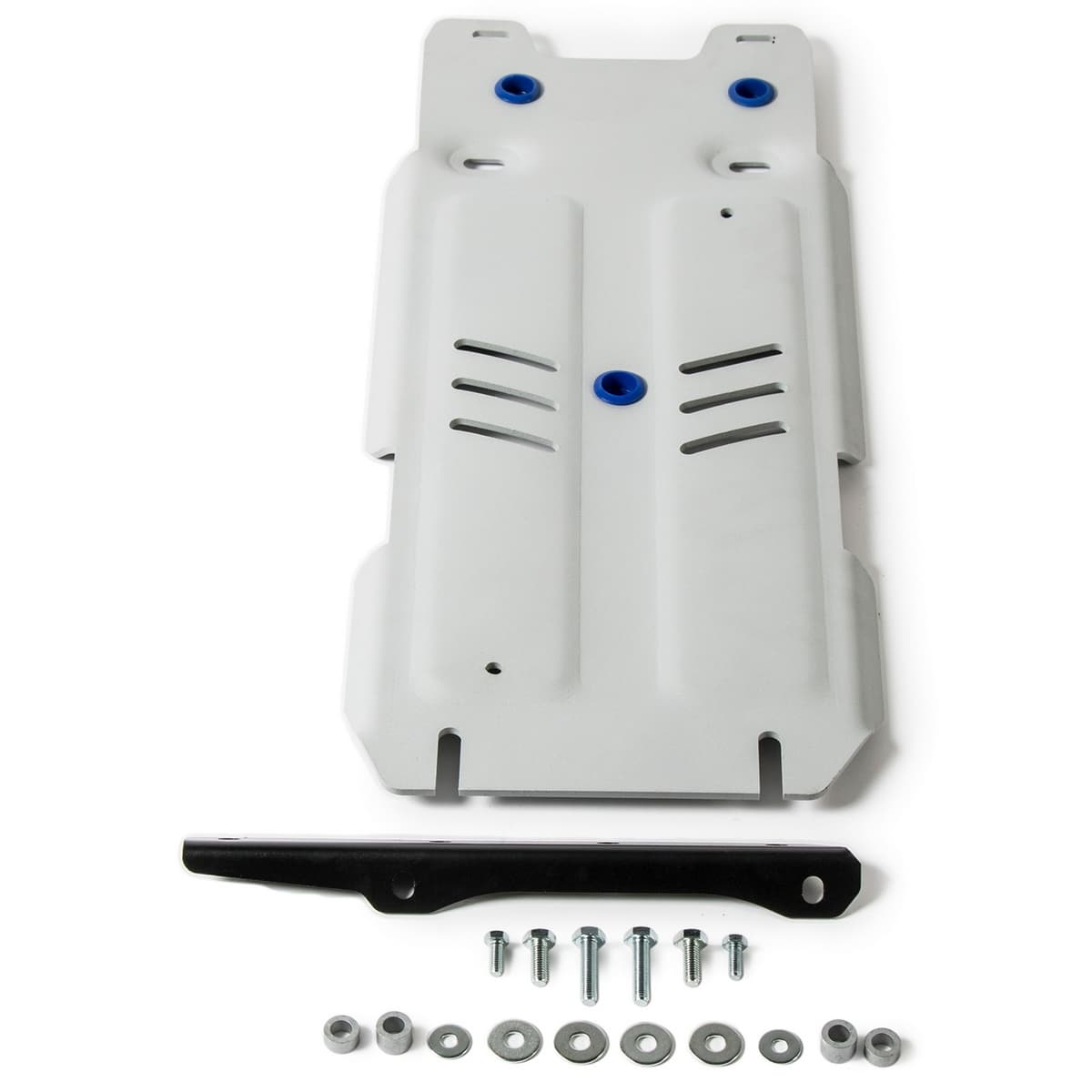 Стойкое порошковое окрашивание позволяет сохранить внешний вид, защитит от царапин, предотвратит коррозию. Также имеется утопленный крепеж для предотвращения срывов. Крепеж не образует с алюминием гальваническую пару. Защита спроектирована индивидуально для автомобиля, что позволяет устанавливать ее в штатные места без доработки кузова за 10 мин.