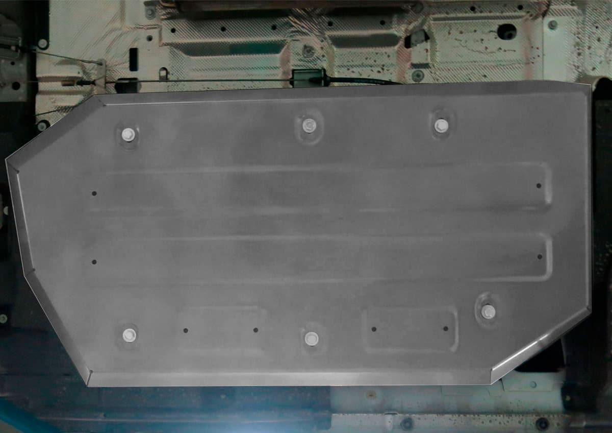Защита проектируется при помощи лазерного 3D сканирования, с учетом особенностей днища автомобиля. Она не уменьшает клиренс и сохраняет другие штатные параметры.