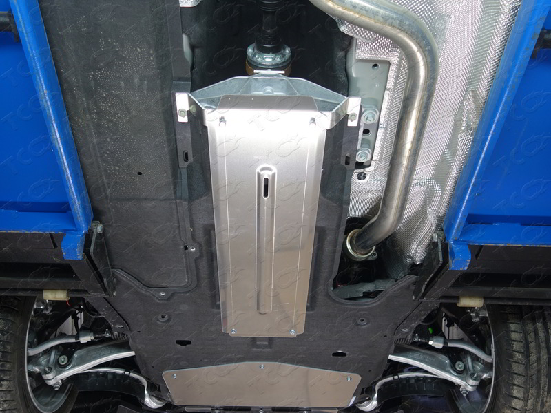 Алюминиевая защита коробки передач артикул ZKTCC00184 от российского производителя ТСС. Подходит для Ягуар ХЕ 2015-2019х годов выпуска. Защита состоит из одного листа и крепежа в комплекте, без отверстия для слива масла. Алюминия толщиной 4,0 мм достаточно для комфортного передвижения без опасений за автомобиль, вес ее 12 кг.