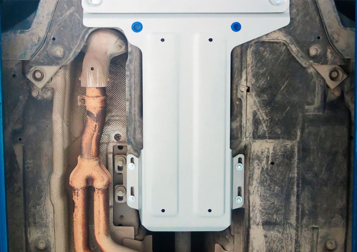 Стойкое порошковое окрашивание позволяет сохранить внешний вид, защитит от царапин, предотвратит коррозию. Также имеется утопленный крепеж для предотвращения срывов. Крепеж не образует с алюминием гальваническую пару. Защита спроектирована индивидуально для автомобиля, что позволяет устанавливать ее в штатные места без доработки кузова за 10 мин.