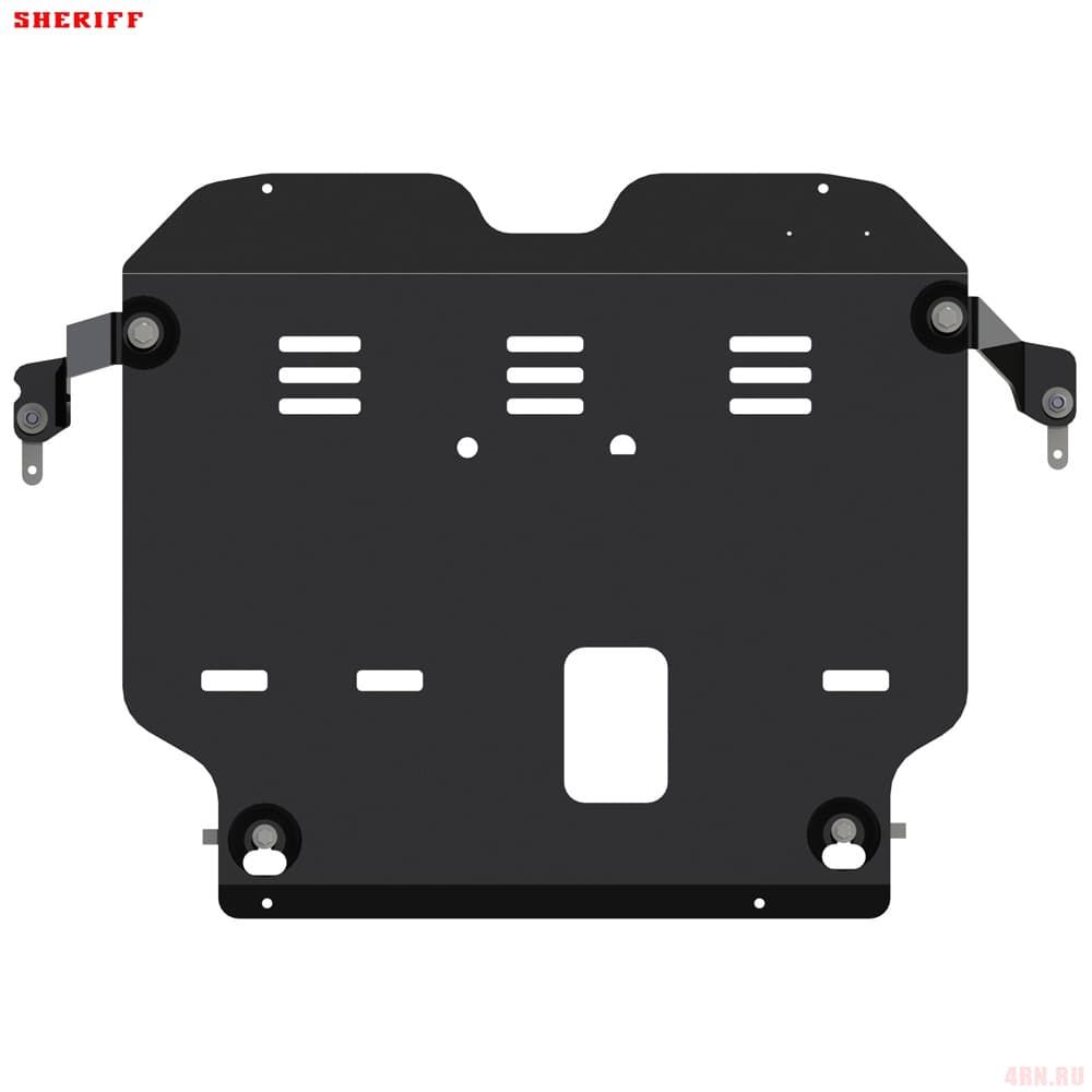 Защита картера Sheriff нужна для сохранности узлов и агрегатов, находящихся на днище авто. Она надежно защитит двигательный отсек вашей машины от повреждений. Также она защищает моторный отсек от влаги, грязи, и предусматривает наличие металлических крыльев, которые выполняют функцию пыльника.
