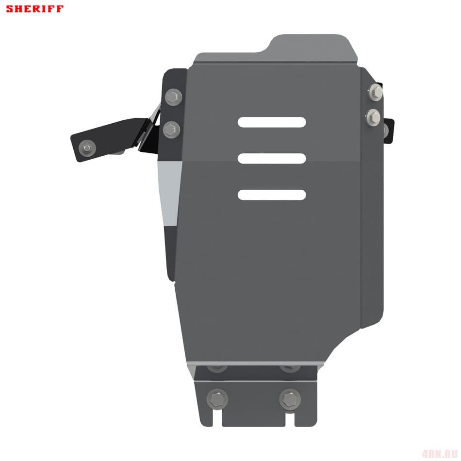 Защита картера Sheriff нужна для сохранности узлов и агрегатов, находящихся на днище авто. Она надежно защитит двигательный отсек вашего автомобиля от повреждений. Также она защищает моторный отсек от влаги и грязи, и предусматривает наличие металлических крыльев, которые выполняют функцию пыльника.