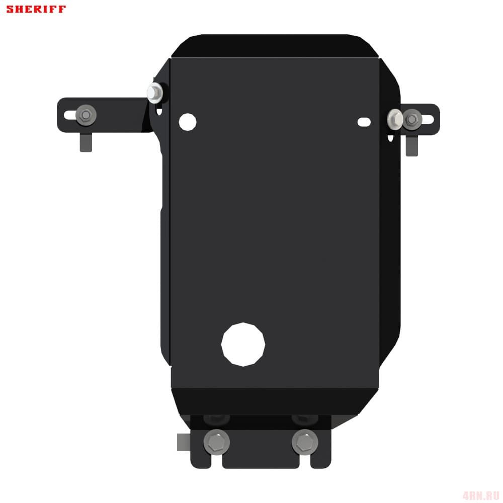 Защита картера Sheriff нужна для сохранности узлов и агрегатов, находящихся на днище авто. Она надежно защитит двигательный отсек вашей машины от повреждений. Также она защищает моторный отсек от влаги, грязи, и предусматривает наличие металлических крыльев, которые выполняют функцию пыльника.