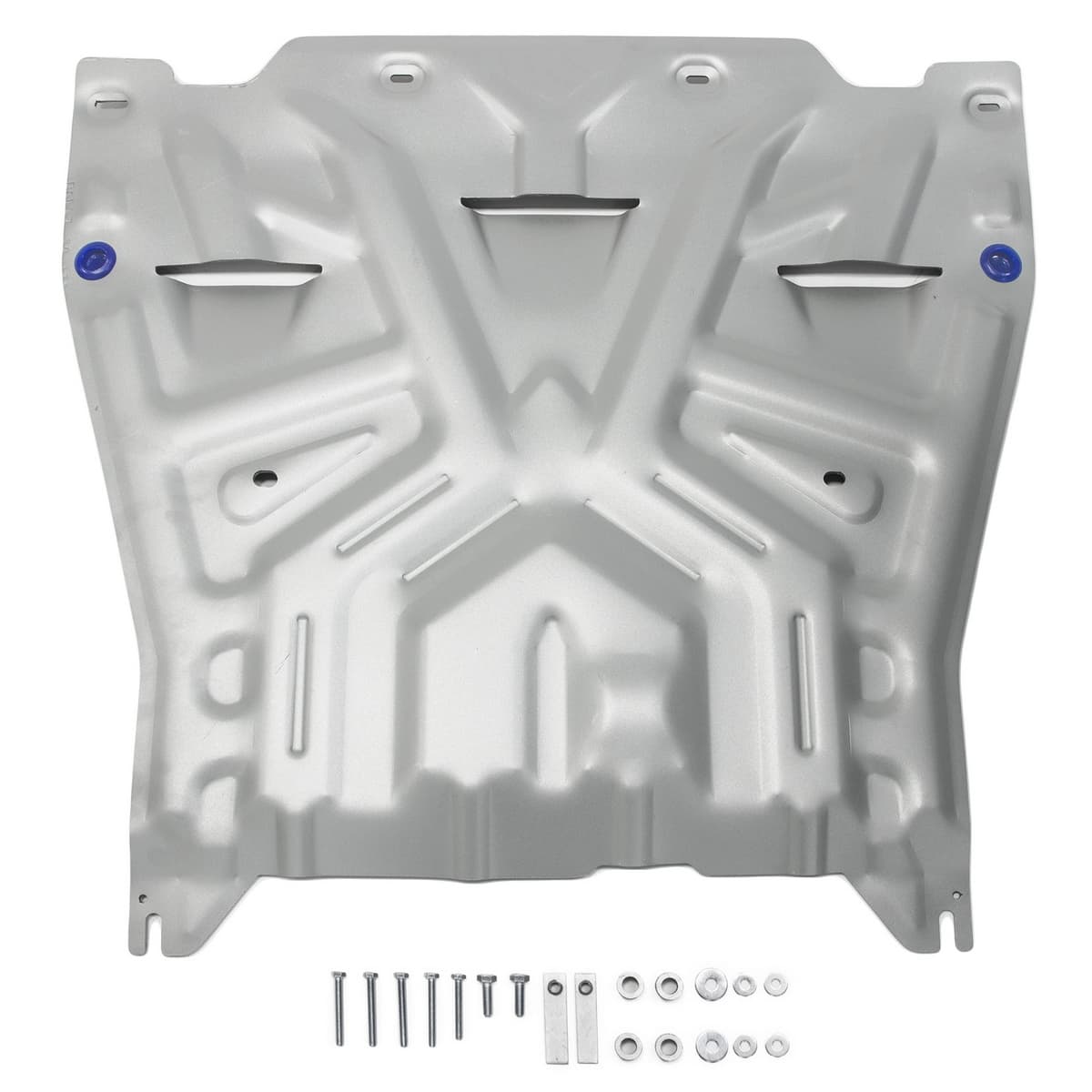 Стойкое порошковое окрашивание позволяет сохранить внешний вид, защитит от царапин, предотвратит коррозию. Также имеется утопленный крепеж для предотвращения срывов. Крепеж не образует с алюминием гальваническую пару. Защита спроектирована индивидуально для автомобиля, что позволяет устанавливать ее в штатные места без доработки кузова за 10 мин.