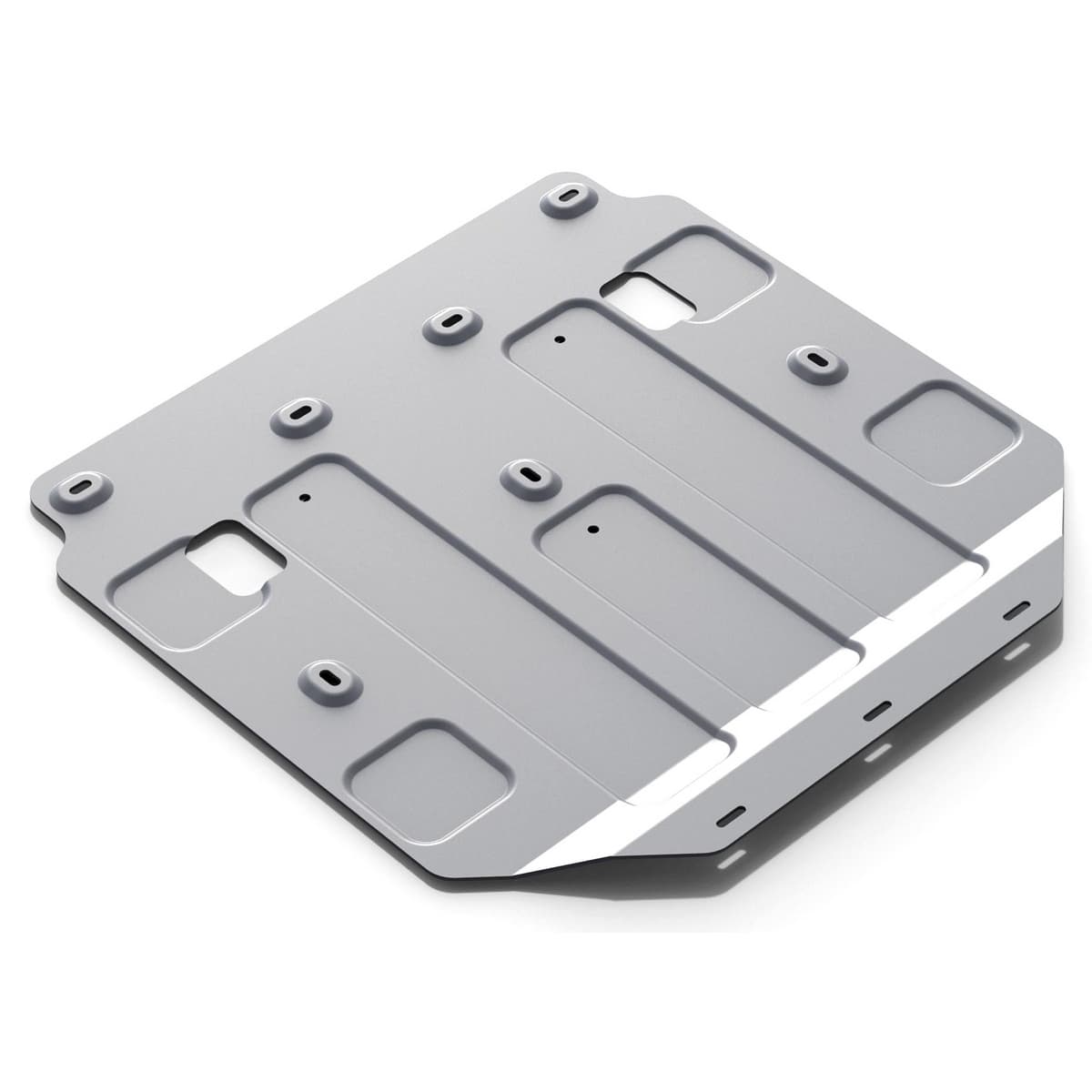 Защита Rival произведена из высококачественного алюминия. Она надежно предохраняет днище вашего автомобиля от различных повреждений при наезде на бордюры, выступающие канализационные люки, кромки поврежденного асфальта или при ремонте дорог.