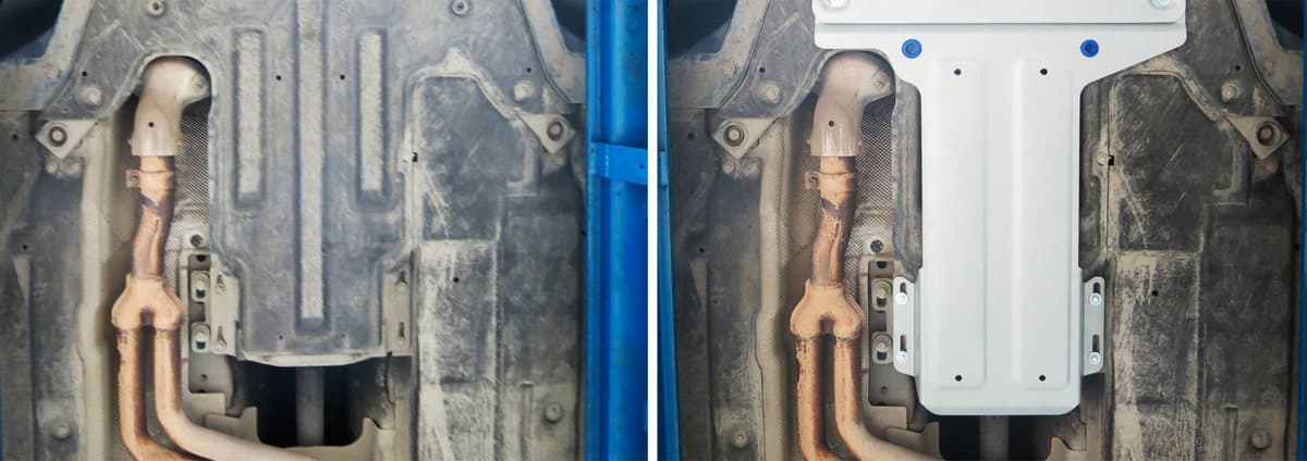 Стойкое порошковое окрашивание позволяет сохранить внешний вид, защитит от царапин, предотвратит коррозию. Также имеется утопленный крепеж для предотвращения срывов. Крепеж не образует с алюминием гальваническую пару. Защита спроектирована индивидуально для автомобиля, что позволяет устанавливать ее в штатные места без доработки кузова за 10 мин.
