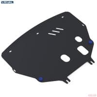 Порошковое окрашивание гарантирует долгий срок службы. А глубокий штамп увеличивает жесткость до 2,5 раз. Также имеется утопленный крепеж для предотвращения срывов. Качественная покраска защиты картера выдерживает 720 часов соляного тумана. Толщина изделия составляет 2-6 мм. Подштамповка в местах крепления предохраняет крепеж от срезания. Деталь спроектирована индивидуально для вашего автомобиля, что позволяет устанавливать ее в штатные места без доработки кузова за 10 мин.