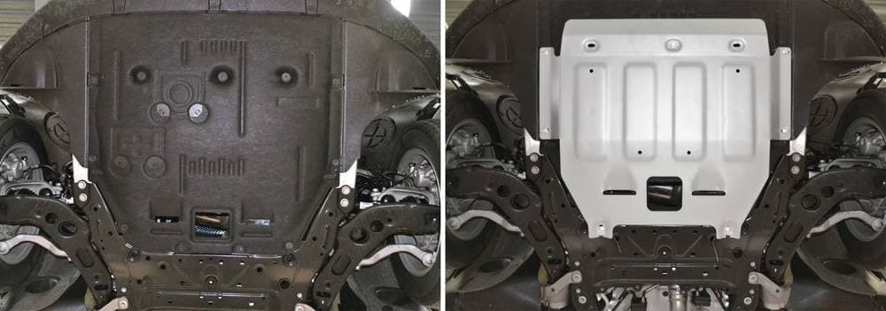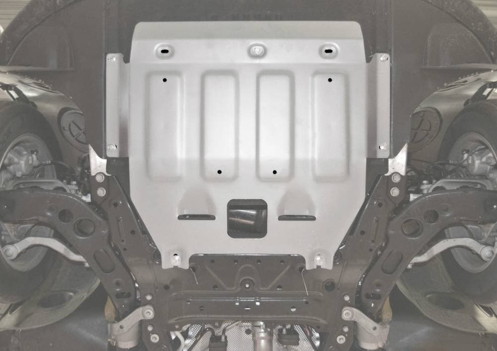 Стойкое порошковое окрашивание позволяет сохранить внешний вид, защитит от царапин, предотвратит коррозию. Также имеется утопленный крепеж для предотвращения срывов. Крепеж не образует с алюминием гальваническую пару. Защита спроектирована индивидуально для автомобиля, что позволяет устанавливать ее в штатные места без доработки кузова за 10 мин.