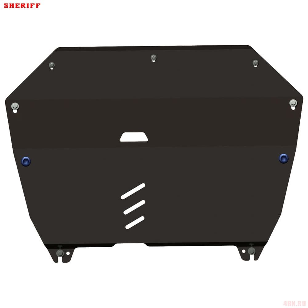 Защита картера Sheriff нужна для сохранности узлов и агрегатов, находящихся на днище авто. Она надежно защитит двигательный отсек вашей машины от повреждений. Также она защищает моторный отсек от влаги, грязи, и предусматривает наличие металлических крыльев, которые выполняют функцию пыльника.
