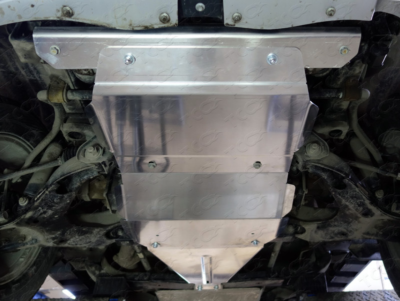Алюминиевая защита раздаточной коробки артикул ZKTCC00123 от российского производителя ТСС. Подходит для Грейт Вол Ховер Н3 2014-2016х годов выпуска. Защита состоит из одного листа и крепежа в комплекте, без отверстия для слива масла. Алюминия толщиной 4,0 мм достаточно для комфортного передвижения без опасений за автомобиль, вес ее 12 кг.