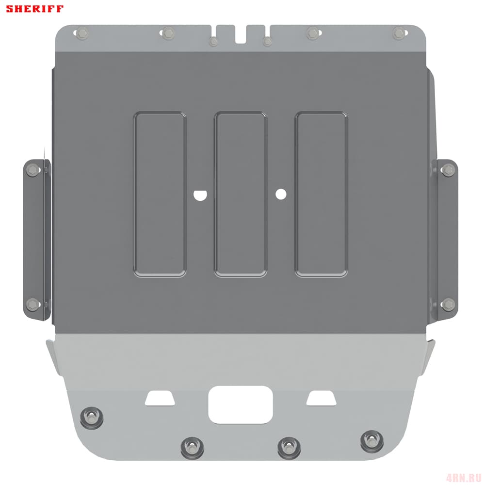 Защита картера Sheriff нужна для сохранности узлов и агрегатов, находящихся на днище авто. Она надежно защитит двигательный отсек вашего автомобиля от повреждений. Также она защищает моторный отсек от влаги и грязи, и предусматривает наличие металлических крыльев, которые выполняют функцию пыльника.