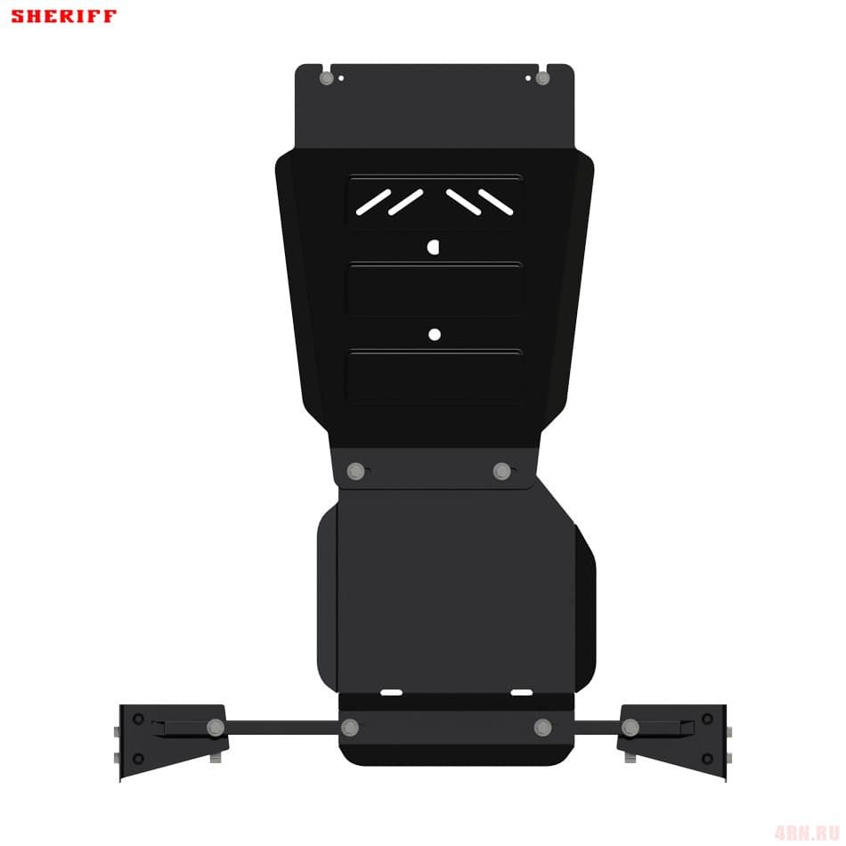 Защита картера Sheriff нужна для сохранности узлов и агрегатов, находящихся на днище авто. Она надежно защитит двигательный отсек вашей машины от повреждений. Также она защищает моторный отсек от влаги, грязи, и предусматривает наличие металлических крыльев, которые выполняют функцию пыльника.