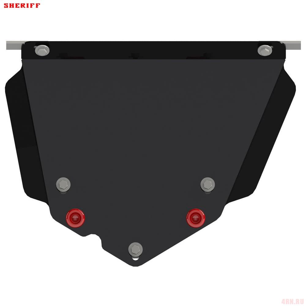 Защита картера Sheriff нужна для сохранности узлов и агрегатов, находящихся на днище авто. Она надежно защитит двигательный отсек вашей машины от повреждений. Также она защищает моторный отсек от влаги, грязи, и предусматривает наличие металлических крыльев, которые выполняют функцию пыльника.