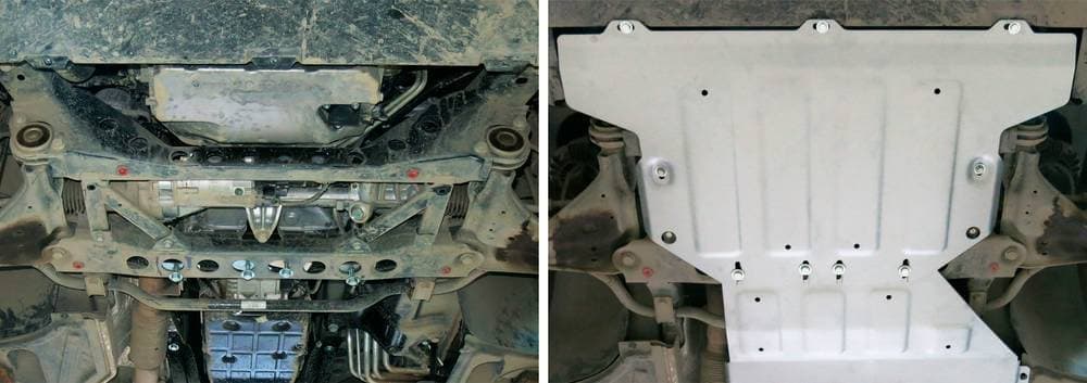 Защита Rival произведена из высококачественного алюминия. Она надежно предохраняет днище вашего автомобиля от различных повреждений при наезде на бордюры, выступающие канализационные люки, кромки поврежденного асфальта или при ремонте дорог.
