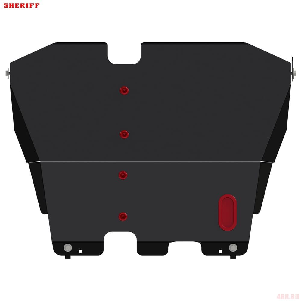 Защита картера Sheriff нужна для сохранности узлов и агрегатов, находящихся на днище авто. Она надежно защитит двигательный отсек вашей машины от повреждений. Также она защищает моторный отсек от влаги, грязи, и предусматривает наличие металлических крыльев, которые выполняют функцию пыльника.