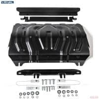 Порошковое окрашивание гарантирует долгий срок службы. А глубокий штамп увеличивает жесткость до 2,5 раз. Также имеется утопленный крепеж для предотвращения срывов. Качественная покраска защиты картера выдерживает 720 часов соляного тумана. Толщина изделия составляет 2-6 мм. Подштамповка в местах крепления предохраняет крепеж от срезания. Деталь спроектирована индивидуально для вашего автомобиля, что позволяет устанавливать ее в штатные места без доработки кузова за 10 мин.