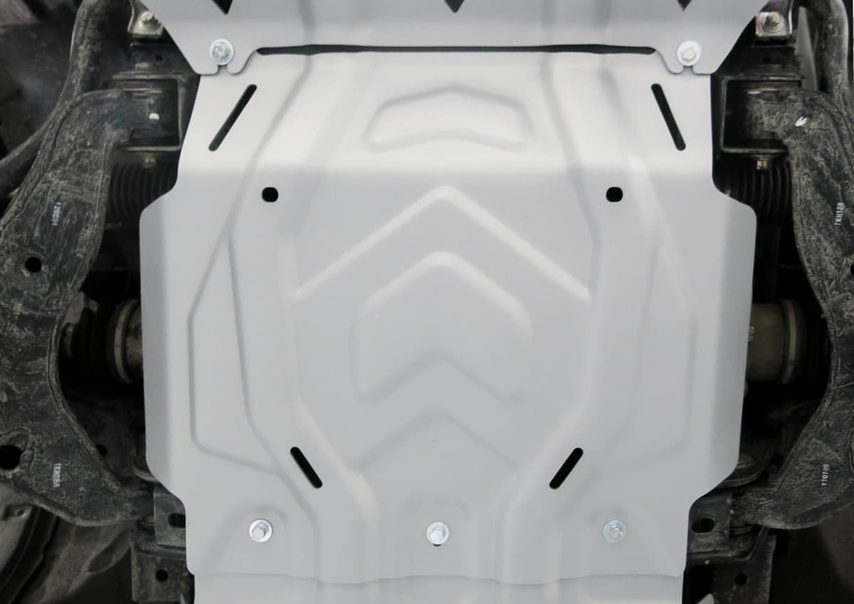 Стойкое порошковое окрашивание позволяет сохранить внешний вид, защитит от царапин, предотвратит коррозию. Также имеется утопленный крепеж для предотвращения срывов. Крепеж не образует с алюминием гальваническую пару. Защита спроектирована индивидуально для автомобиля, что позволяет устанавливать ее в штатные места без доработки кузова за 10 мин.