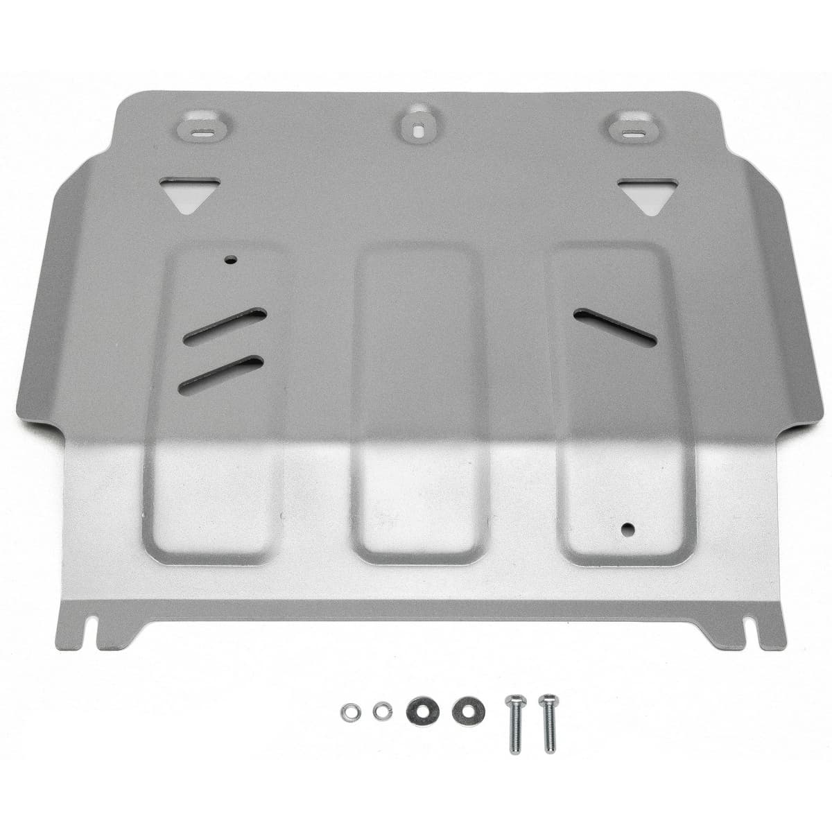 Стойкое порошковое окрашивание позволяет сохранить внешний вид, защитит от царапин, предотвратит коррозию. Также имеется утопленный крепеж для предотвращения срывов. Крепеж не образует с алюминием гальваническую пару. Защита спроектирована индивидуально для автомобиля, что позволяет устанавливать ее в штатные места без доработки кузова за 10 мин.