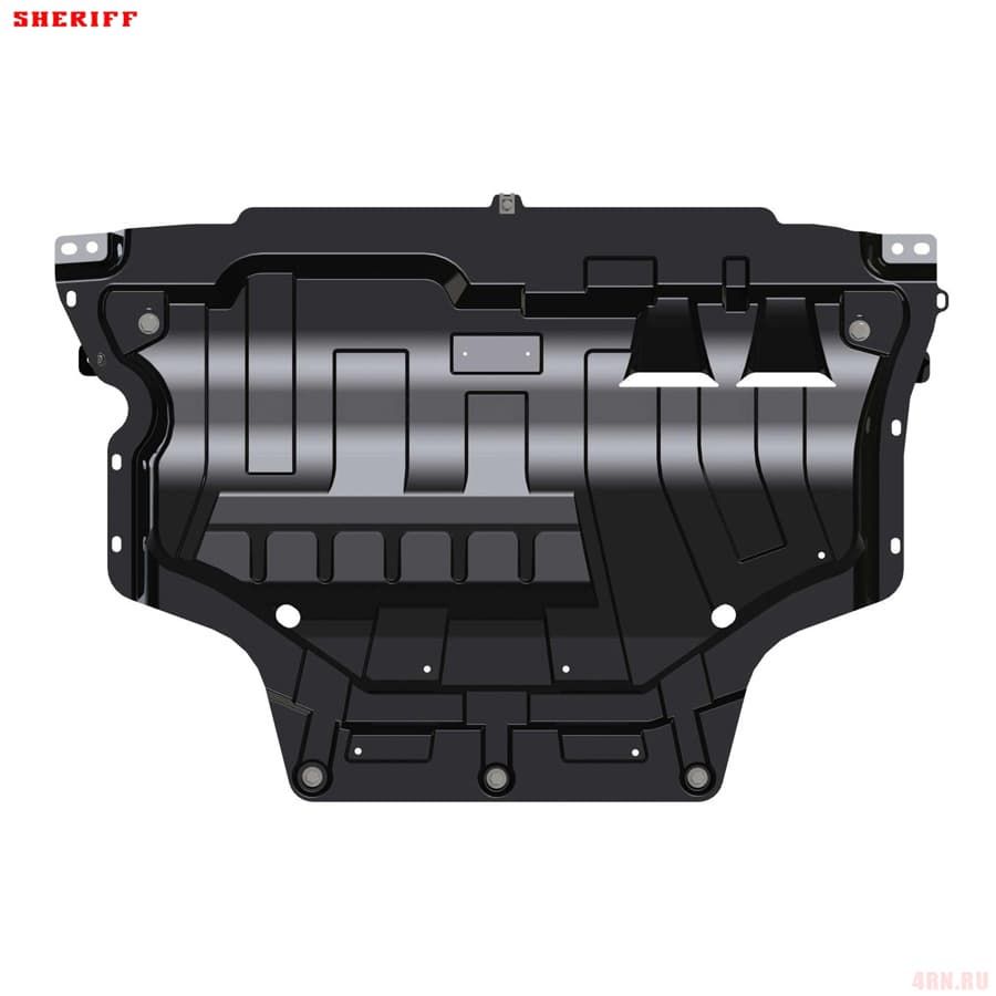 Защита картера Sheriff нужна для сохранности узлов и агрегатов, находящихся на днище авто. Она надежно защитит двигательный отсек вашей машины от повреждений. Также она защищает моторный отсек от влаги, грязи, и предусматривает наличие металлических крыльев, которые выполняют функцию пыльника.