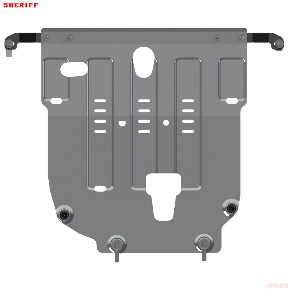 Защита картера Sheriff нужна для сохранности узлов и агрегатов, находящихся на днище авто. Она надежно защитит двигательный отсек вашего автомобиля от повреждений. Также она защищает моторный отсек от влаги и грязи, и предусматривает наличие металлических крыльев, которые выполняют функцию пыльника.