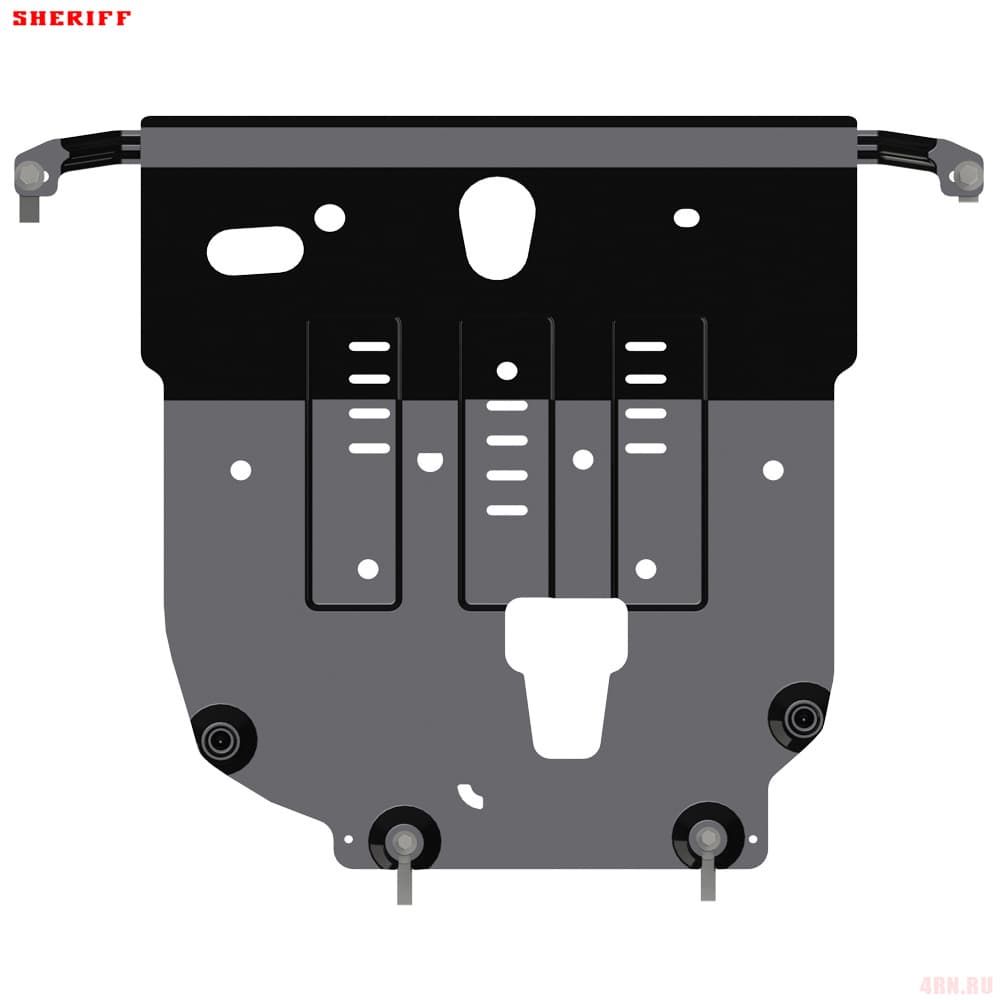 Защита картера Sheriff нужна для сохранности узлов и агрегатов, находящихся на днище авто. Она надежно защитит двигательный отсек вашей машины от повреждений. Также она защищает моторный отсек от влаги, грязи, и предусматривает наличие металлических крыльев, которые выполняют функцию пыльника.