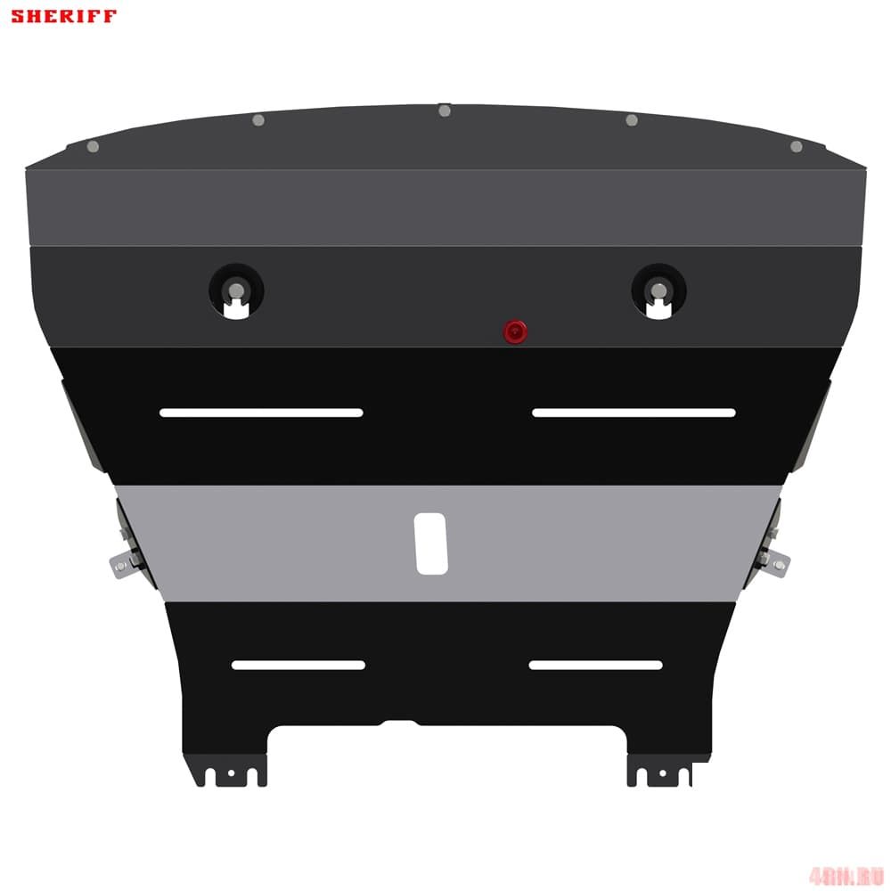 Защита картера Sheriff нужна для сохранности узлов и агрегатов, находящихся на днище авто. Она надежно защитит двигательный отсек вашей машины от повреждений. Также она защищает моторный отсек от влаги, грязи, и предусматривает наличие металлических крыльев, которые выполняют функцию пыльника.
