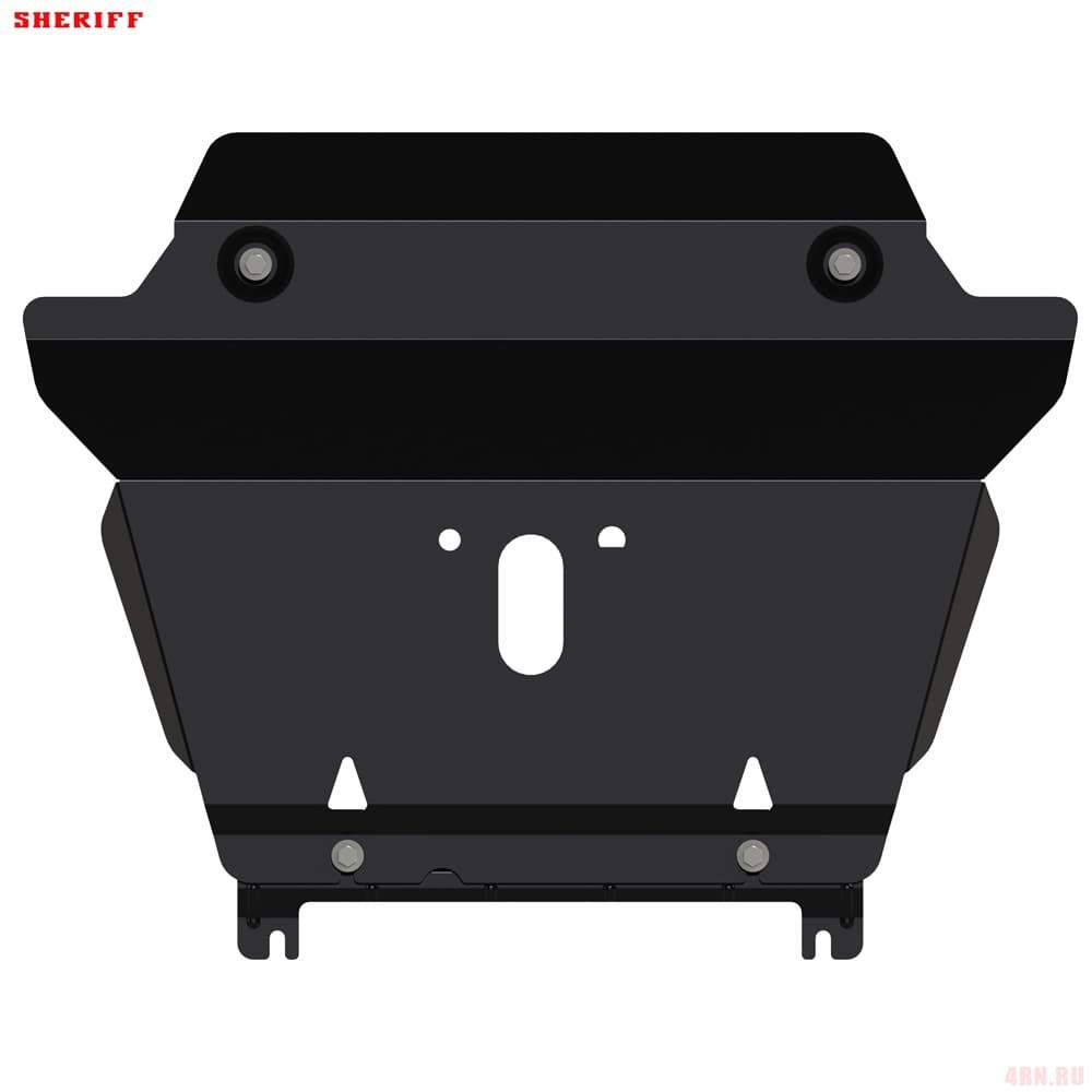 Защита картера Sheriff нужна для сохранности узлов и агрегатов, находящихся на днище авто. Она надежно защитит двигательный отсек вашей машины от повреждений. Также она защищает моторный отсек от влаги, грязи, и предусматривает наличие металлических крыльев, которые выполняют функцию пыльника.