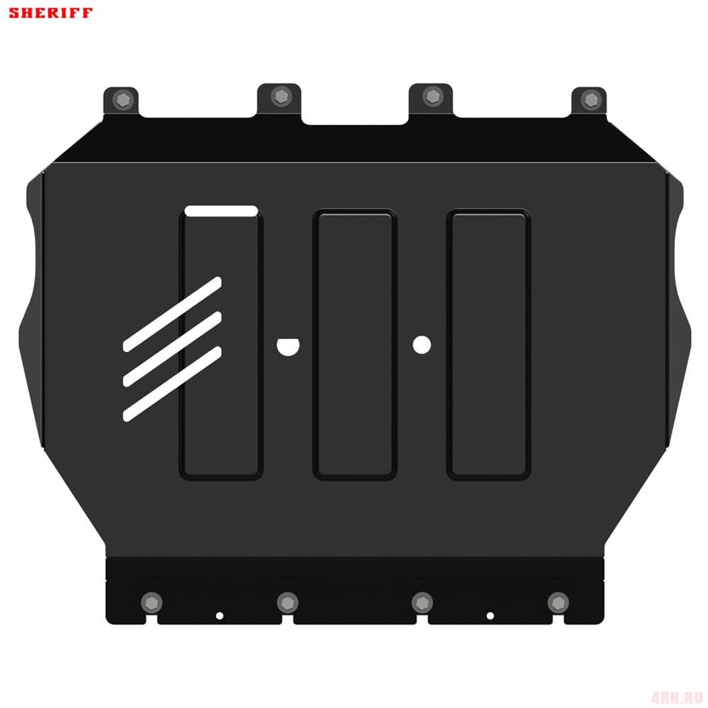 Защита картера Sheriff нужна для сохранности узлов и агрегатов, находящихся на днище авто. Она надежно защитит двигательный отсек вашей машины от повреждений. Также она защищает моторный отсек от влаги, грязи, и предусматривает наличие металлических крыльев, которые выполняют функцию пыльника.