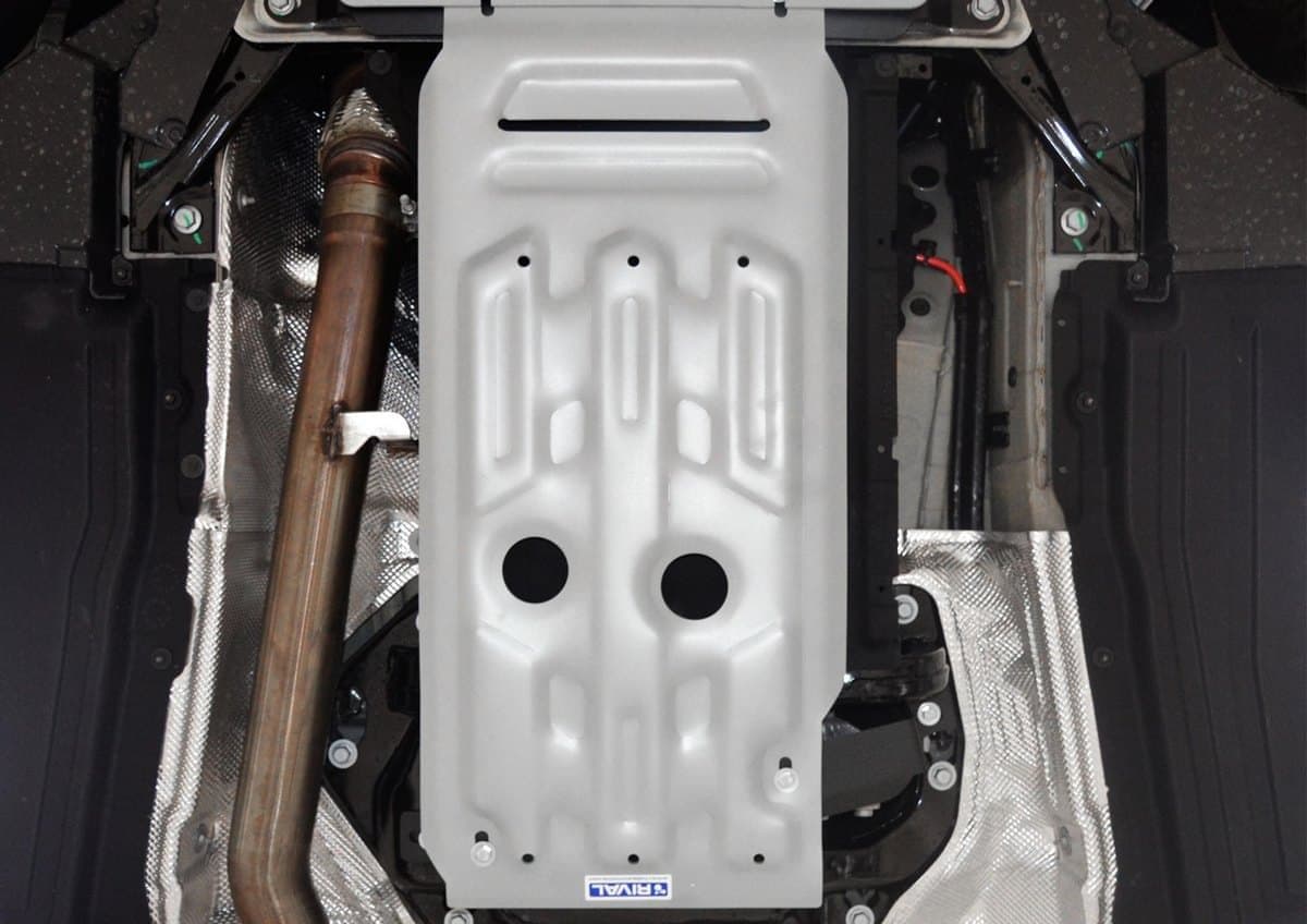 Стойкое порошковое окрашивание позволяет сохранить внешний вид, защитит от царапин, предотвратит коррозию. Также имеется утопленный крепеж для предотвращения срывов. Крепеж не образует с алюминием гальваническую пару. Защита спроектирована индивидуально для автомобиля, что позволяет устанавливать ее в штатные места без доработки кузова за 10 мин.