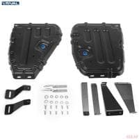 Порошковое окрашивание гарантирует долгий срок службы. А глубокий штамп увеличивает жесткость до 2,5 раз. Также имеется утопленный крепеж для предотвращения срывов. Качественная покраска защиты картера выдерживает 720 часов соляного тумана. Толщина изделия составляет 2-6 мм. Подштамповка в местах крепления предохраняет крепеж от срезания. Деталь спроектирована индивидуально для вашего автомобиля, что позволяет устанавливать ее в штатные места без доработки кузова за 10 мин.