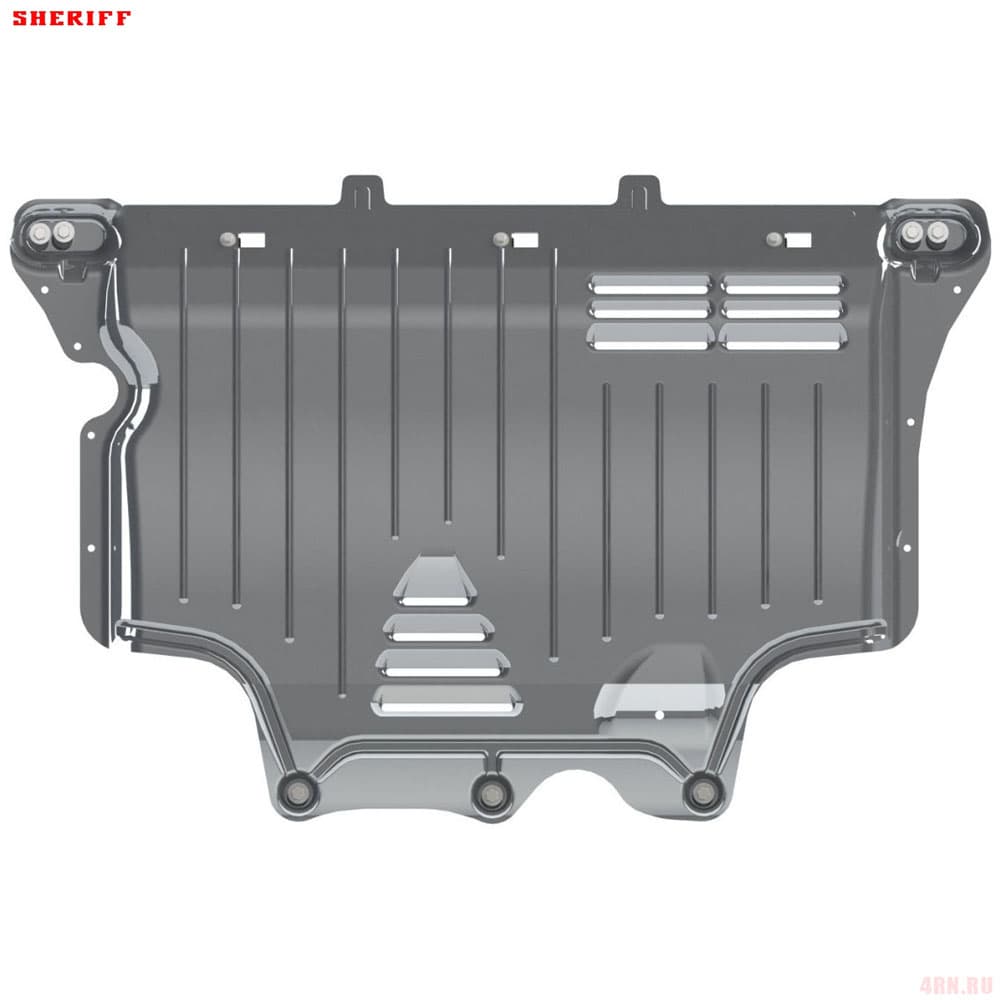 Защита картера Sheriff нужна для сохранности узлов и агрегатов, находящихся на днище авто. Она надежно защитит двигательный отсек вашего автомобиля от повреждений. Также она защищает моторный отсек от влаги и грязи, и предусматривает наличие металлических крыльев, которые выполняют функцию пыльника.