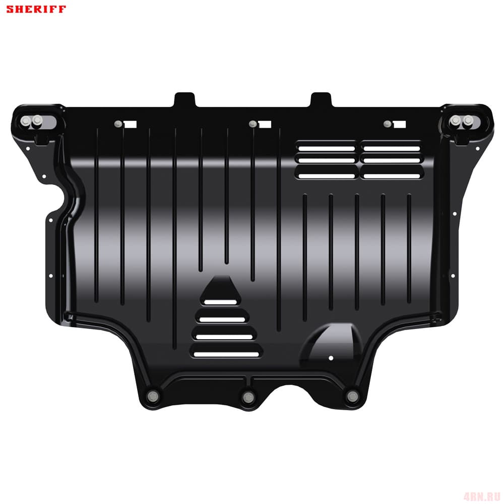 Защита картера Sheriff нужна для сохранности узлов и агрегатов, находящихся на днище авто. Она надежно защитит двигательный отсек вашей машины от повреждений. Также она защищает моторный отсек от влаги, грязи, и предусматривает наличие металлических крыльев, которые выполняют функцию пыльника.