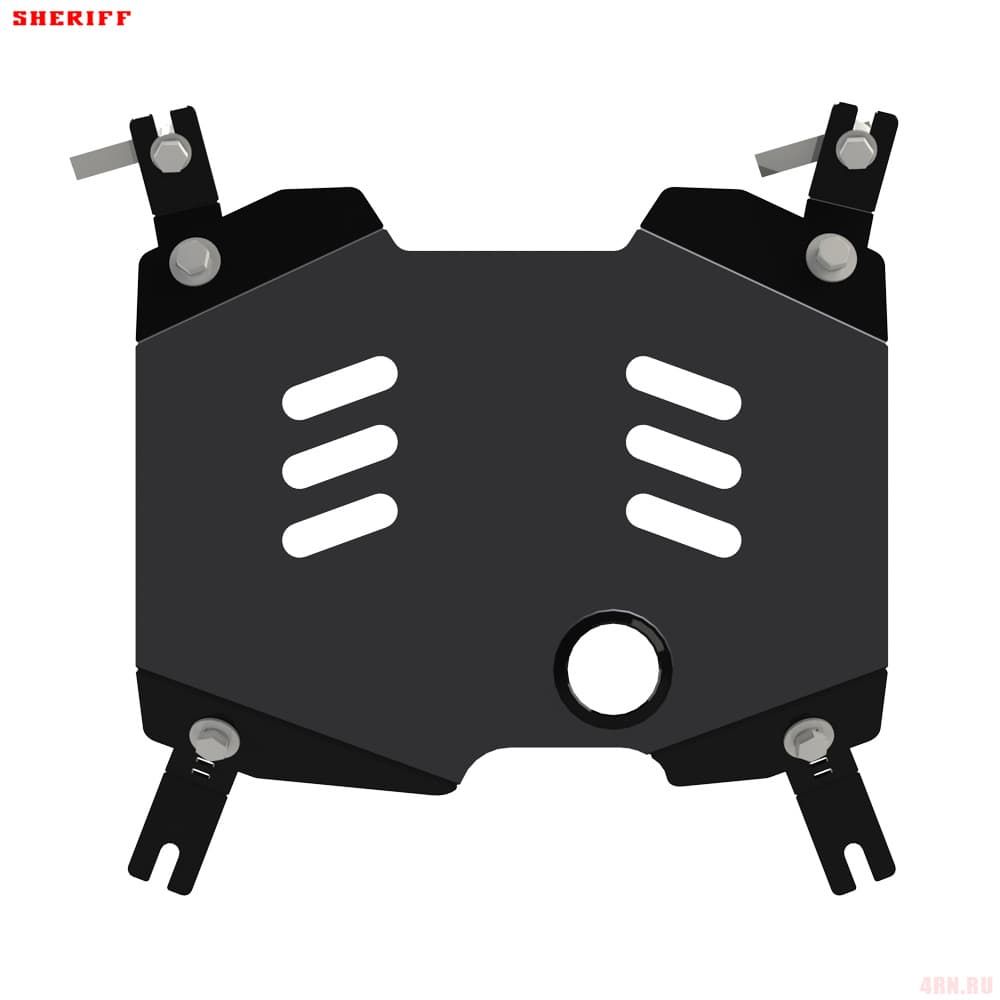 Защита картера Sheriff нужна для сохранности узлов и агрегатов, находящихся на днище авто. Она надежно защитит двигательный отсек вашей машины от повреждений. Также она защищает моторный отсек от влаги, грязи, и предусматривает наличие металлических крыльев, которые выполняют функцию пыльника.