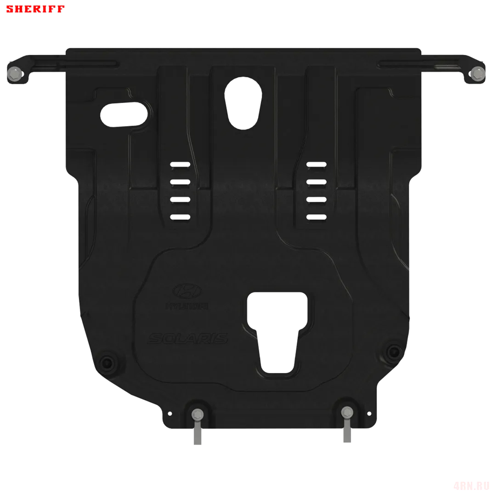 Защита картера Sheriff нужна для сохранности узлов и агрегатов, находящихся на днище авто. Она надежно защитит двигательный отсек вашей машины от повреждений. Также она защищает моторный отсек от влаги, грязи, и предусматривает наличие металлических крыльев, которые выполняют функцию пыльника.