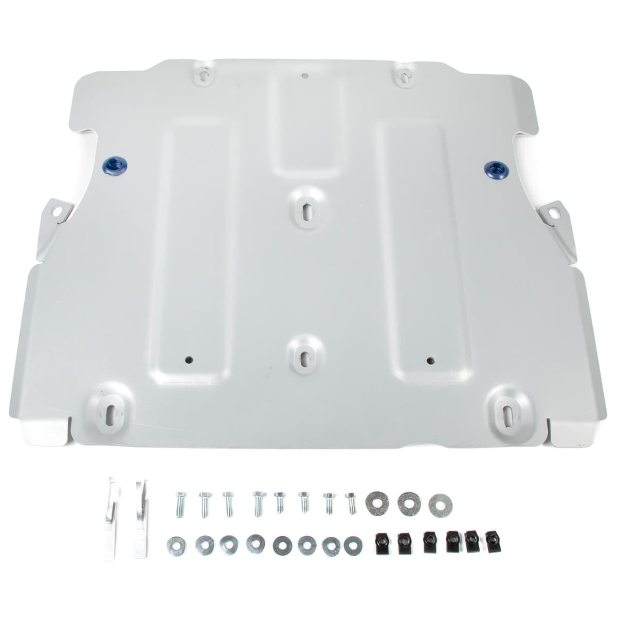 Алюминиевая защита кпп с крепежом в комплекте, артикул 333.0338.1 от российского бренда Риваль. Разработана специально для автомобиля Audi Q5 2017-2020.