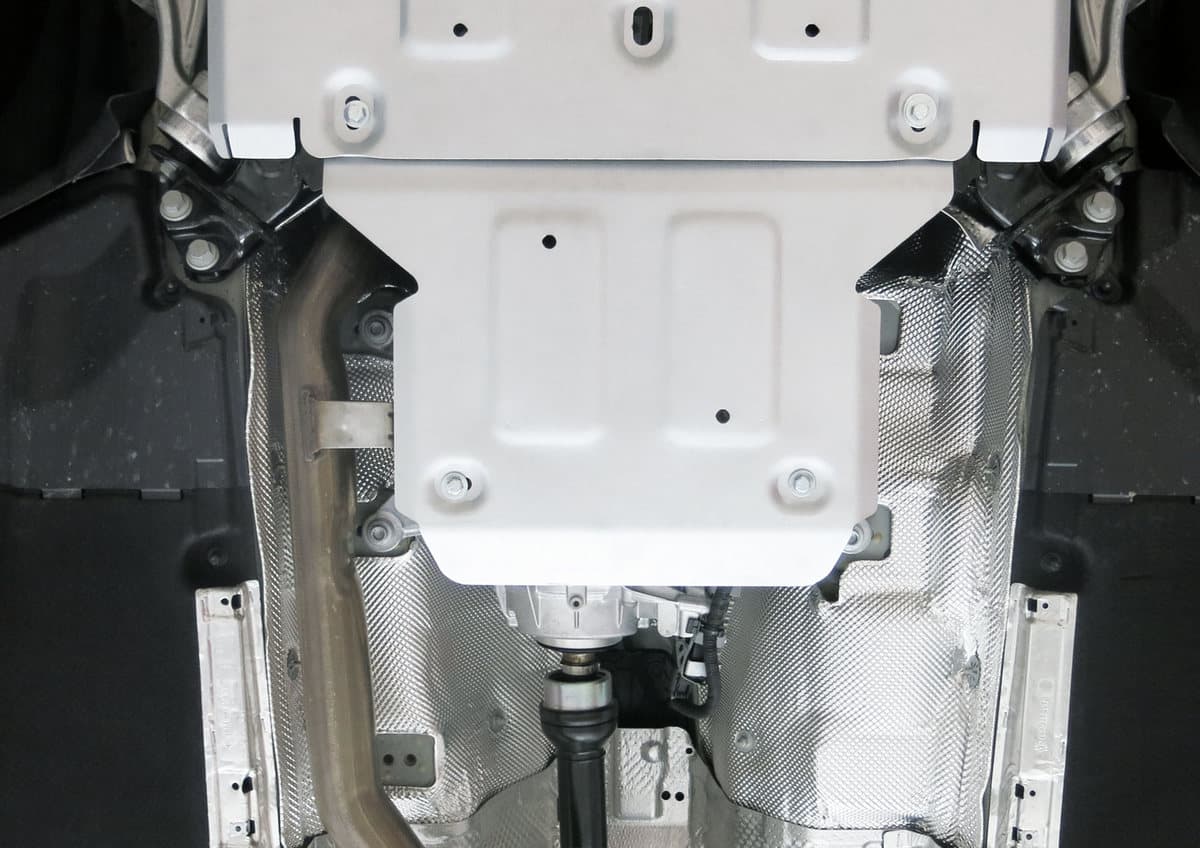 Стойкое порошковое окрашивание позволяет сохранить внешний вид, защитит от царапин, предотвратит коррозию. Также имеется утопленный крепеж для предотвращения срывов. Крепеж не образует с алюминием гальваническую пару. Защита спроектирована индивидуально для автомобиля, что позволяет устанавливать ее в штатные места без доработки кузова за 10 мин.