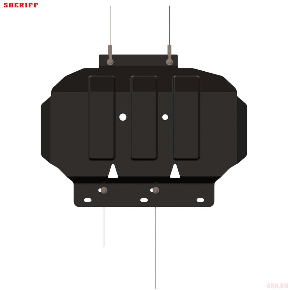 Защита картера Sheriff нужна для сохранности узлов и агрегатов, находящихся на днище авто. Она надежно защитит двигательный отсек вашей машины от повреждений. Также она защищает моторный отсек от влаги, грязи, и предусматривает наличие металлических крыльев, которые выполняют функцию пыльника.