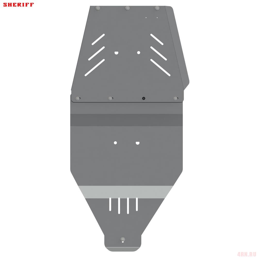 Защита картера Sheriff нужна для сохранности узлов и агрегатов, находящихся на днище авто. Она надежно защитит двигательный отсек вашего автомобиля от повреждений. Также она защищает моторный отсек от влаги и грязи, и предусматривает наличие металлических крыльев, которые выполняют функцию пыльника.