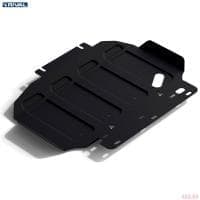 Порошковое окрашивание гарантирует долгий срок службы. А глубокий штамп увеличивает жесткость до 2,5 раз. Также имеется утопленный крепеж для предотвращения срывов. Качественная покраска защиты картера выдерживает 720 часов соляного тумана. Толщина изделия составляет 2-6 мм. Подштамповка в местах крепления предохраняет крепеж от срезания. Деталь спроектирована индивидуально для вашего автомобиля, что позволяет устанавливать ее в штатные места без доработки кузова за 10 мин.