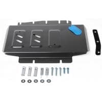 Порошковое окрашивание гарантирует долгий срок службы. А глубокий штамп увеличивает жесткость до 2,5 раз. Также имеется утопленный крепеж для предотвращения срывов. Качественная покраска защиты картера выдерживает 720 часов соляного тумана. Толщина изделия составляет 2-6 мм. Подштамповка в местах крепления предохраняет крепеж от срезания. Деталь спроектирована индивидуально для вашего автомобиля, что позволяет устанавливать ее в штатные места без доработки кузова за 10 мин.