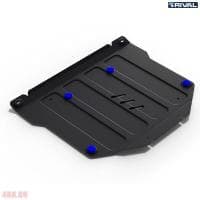 Порошковое окрашивание гарантирует долгий срок службы. А глубокий штамп увеличивает жесткость до 2,5 раз. Также имеется утопленный крепеж для предотвращения срывов. Качественная покраска защиты картера выдерживает 720 часов соляного тумана. Толщина изделия составляет 2-6 мм. Подштамповка в местах крепления предохраняет крепеж от срезания. Деталь спроектирована индивидуально для вашего автомобиля, что позволяет устанавливать ее в штатные места без доработки кузова за 10 мин.