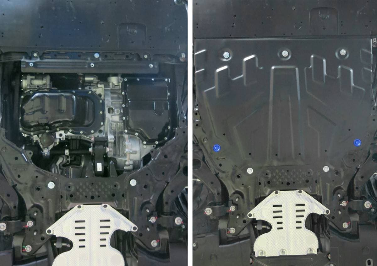 Защита двигателя и кпп артикул 111.3817.1 от российского бренда Риваль. Разработана специально для автомобиля Mazda CX-5 2017-2020.