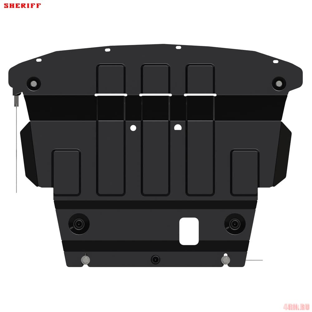 Защита картера Sheriff нужна для сохранности узлов и агрегатов, находящихся на днище авто. Она надежно защитит двигательный отсек вашей машины от повреждений. Также она защищает моторный отсек от влаги, грязи, и предусматривает наличие металлических крыльев, которые выполняют функцию пыльника.