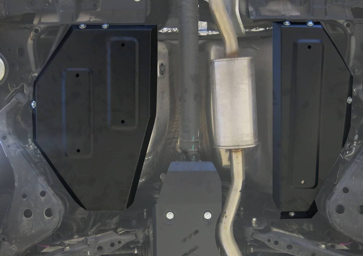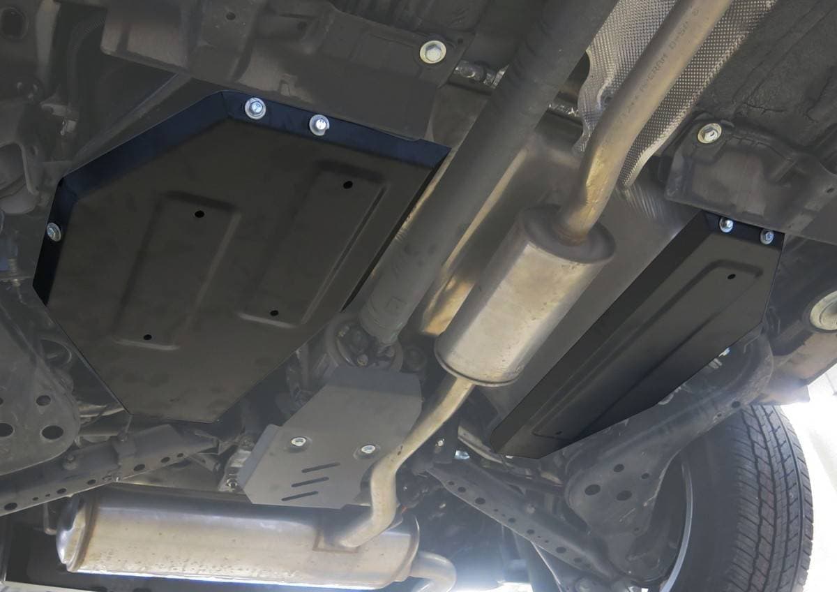 Порошковое окрашивание гарантирует долгий срок службы. А глубокий штамп увеличивает жесткость до 2,5 раз. Также имеется утопленный крепеж для предотвращения срывов. Качественная покраска защиты картера выдерживает 720 часов соляного тумана. Толщина изделия составляет 2-6 мм. Подштамповка в местах крепления предохраняет крепеж от срезания. Деталь спроектирована индивидуально для вашего автомобиля, что позволяет устанавливать ее в штатные места без доработки кузова за 10 мин.