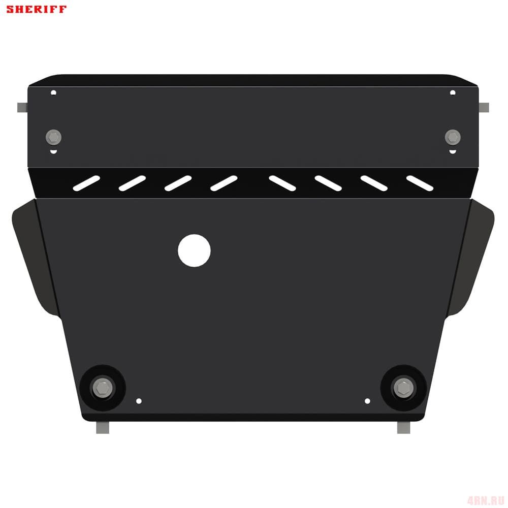 Защита картера Sheriff нужна для сохранности узлов и агрегатов, находящихся на днище авто. Она надежно защитит двигательный отсек вашей машины от повреждений. Также она защищает моторный отсек от влаги, грязи, и предусматривает наличие металлических крыльев, которые выполняют функцию пыльника.