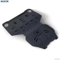 Порошковое окрашивание гарантирует долгий срок службы. А глубокий штамп увеличивает жесткость до 2,5 раз. Также имеется утопленный крепеж для предотвращения срывов. Качественная покраска защиты картера выдерживает 720 часов соляного тумана. Толщина изделия составляет 2-6 мм. Подштамповка в местах крепления предохраняет крепеж от срезания. Деталь спроектирована индивидуально для вашего автомобиля, что позволяет устанавливать ее в штатные места без доработки кузова за 10 мин.