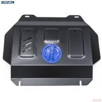 Порошковое окрашивание гарантирует долгий срок службы. А глубокий штамп увеличивает жесткость до 2,5 раз. Также имеется утопленный крепеж для предотвращения срывов. Качественная покраска защиты картера выдерживает 720 часов соляного тумана. Толщина изделия составляет 2-6 мм. Подштамповка в местах крепления предохраняет крепеж от срезания. Деталь спроектирована индивидуально для вашего автомобиля, что позволяет устанавливать ее в штатные места без доработки кузова за 10 мин.
