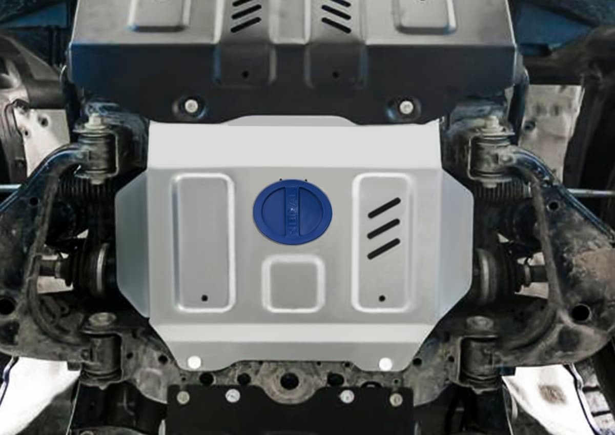 Стойкое порошковое окрашивание позволяет сохранить внешний вид, защитит от царапин, предотвратит коррозию. Также имеется утопленный крепеж для предотвращения срывов. Крепеж не образует с алюминием гальваническую пару. Защита спроектирована индивидуально для автомобиля, что позволяет устанавливать ее в штатные места без доработки кузова за 10 мин.
