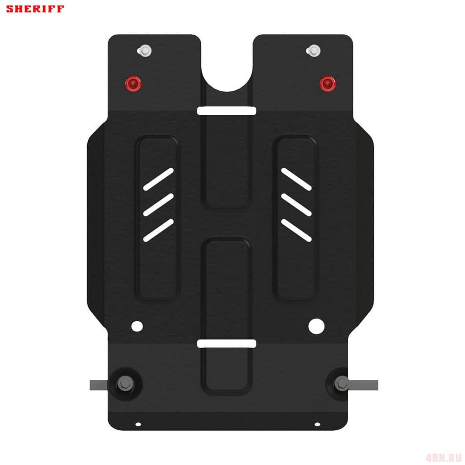 Защита картера Sheriff нужна для сохранности узлов и агрегатов, находящихся на днище авто. Она надежно защитит двигательный отсек вашей машины от повреждений. Также она защищает моторный отсек от влаги, грязи, и предусматривает наличие металлических крыльев, которые выполняют функцию пыльника.